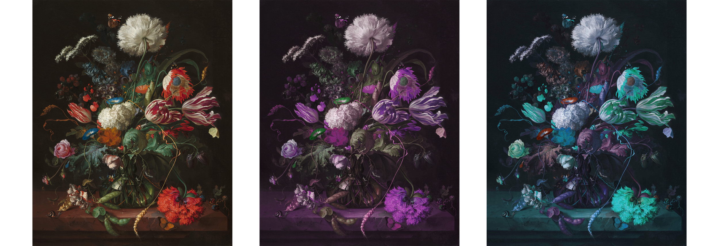 Although he occasionally ventured into landscapes and mythological subjects, it was in his flower pieces that Van Huysum found his true voice. His bouquets, seemingly spontaneous yet intricately designed, contained flowers from all seasons of the year, depicted at various stages of life: buds beginning to unfurl, blossoms in radiant bloom, petals beginning to wither. In this cycle of growth and decay, Van Huysum offered not only a dazzling display of abundance but also a meditation on transience. His paintings dazzled the senses with their color, texture, and illusionistic brilliance, while at the same time prompting reflection on the fleeting nature of earthly beauty. He underscored this moral dimension by inscribing a biblical verse on one of his vases: “Consider the lilies of the field, Solomon in all his glory was not arrayed like one of these.” Through such works, Van Huysum combined delight with instruction, elevating flower painting into a realm that was both aesthetic and philosophical.