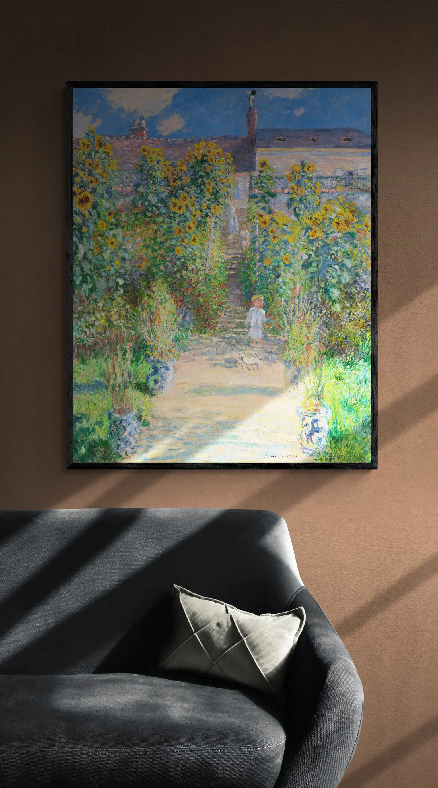 With his paintings now commanding high prices, Monet was finally able to realize a lifelong dream: to create a living canvas. He purchased land adjacent to his home in Giverny, diverted a stream, and built a water garden complete with a Japanese bridge. Over time, the garden blossomed into a floral wonderland—a monumental orchestration of color, form, and seasonal change.
