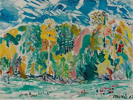By the 1930s, Marin’s reputation had soared. In 1936, the Museum of Modern Art honored him with a one-man retrospective. That same year, Alfred Stieglitz died, but Marin continued to work with Stieglitz’s widow at An American Place. He remained in New Jersey, summered in Maine, and kept painting with undiminished passion.