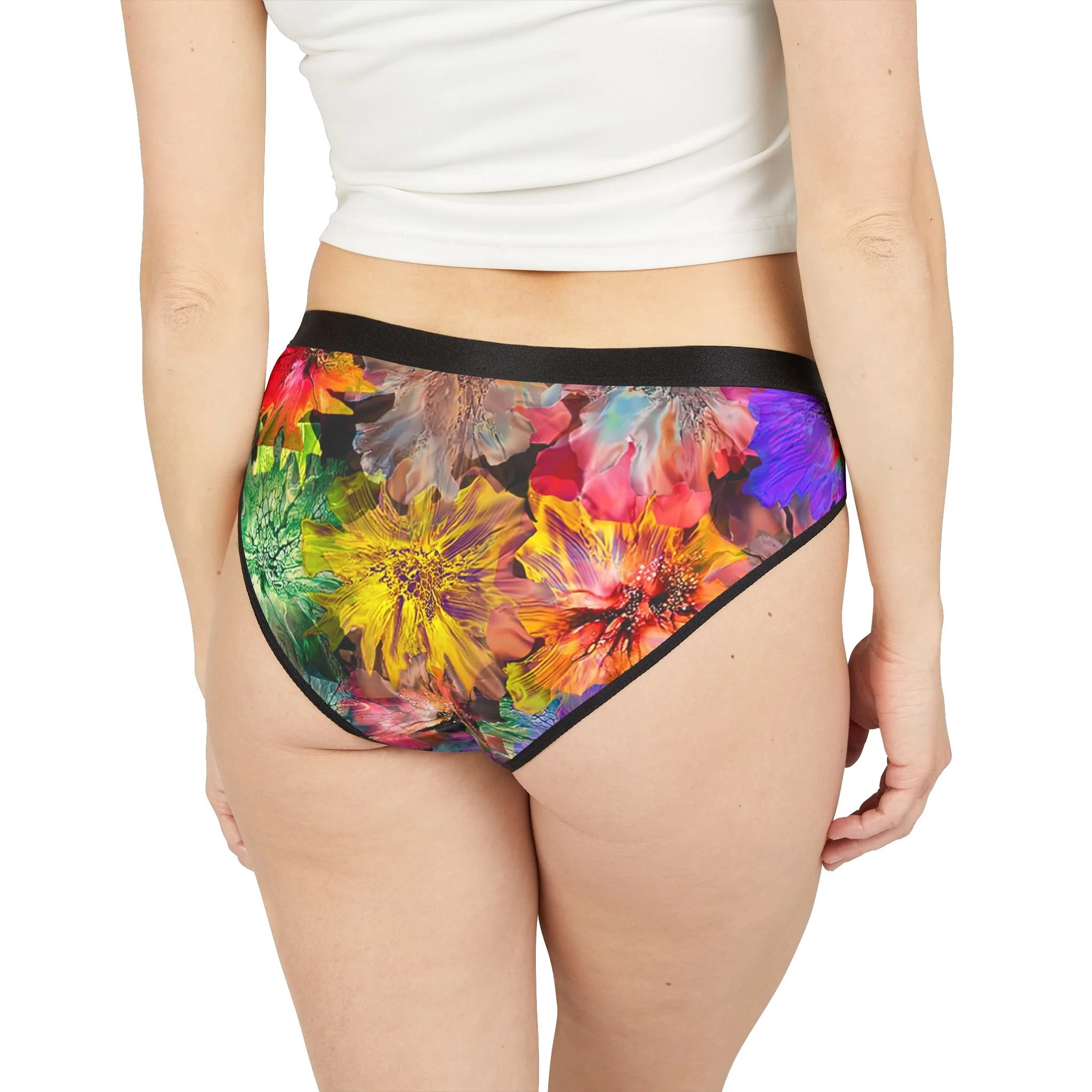 These low-rise bikini panties bring joyful color and effortless comfort to everyday wear. The watercolor-like floral print feels lively and artistic, like slipping into a secret garden on a bright morning. Lightweight, breathable fabric stretches with your movements and the plush elastic waistband sits smoothly under clothing so you can carry the bloom of the pattern without any fuss. Wear them on a busy day when you want a little private brightness, tuck them into a suitcase for a weekend escape, or layer them under linen for warm-weather ease.